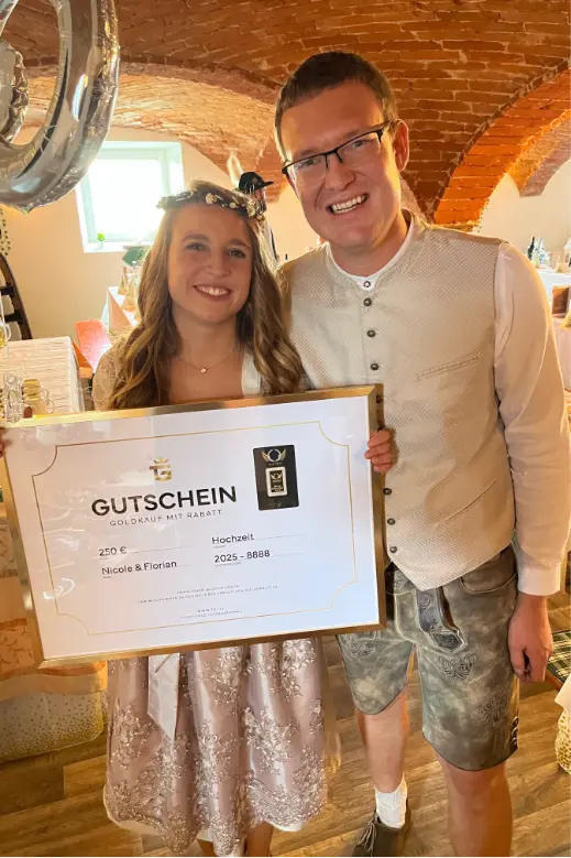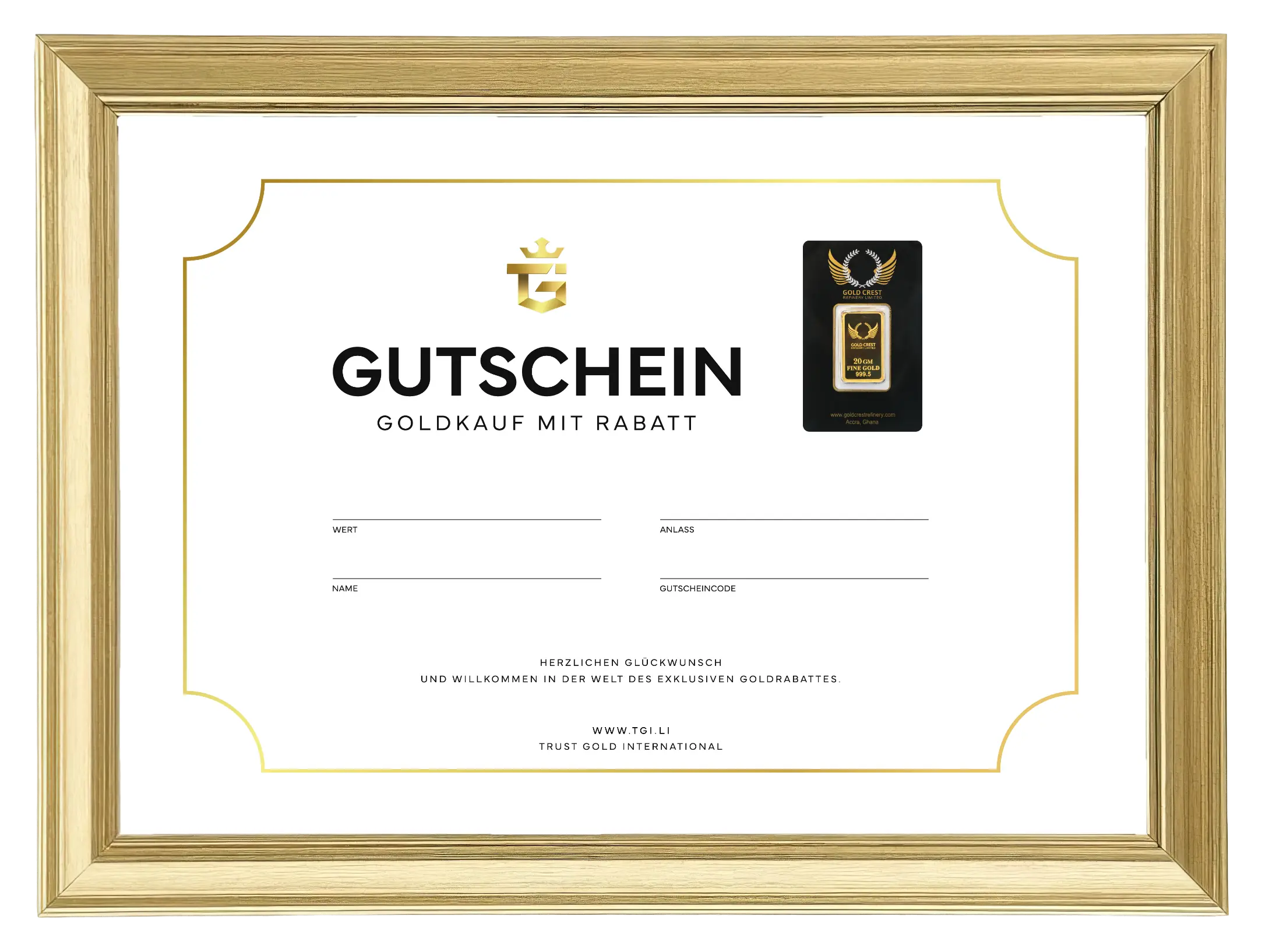 - Der Beschenkte entscheidet über einen Goldkauf bei der TGI AG nach der LIVE-PRÄSENTATION Goldkauf mit Rabatt.